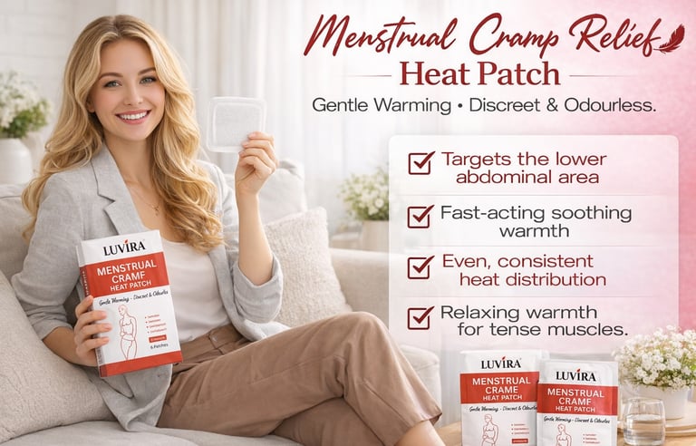 Experience the power of natural heat therapy with LUVIRA™ Menstrual Cramp Relief Heat Patches.