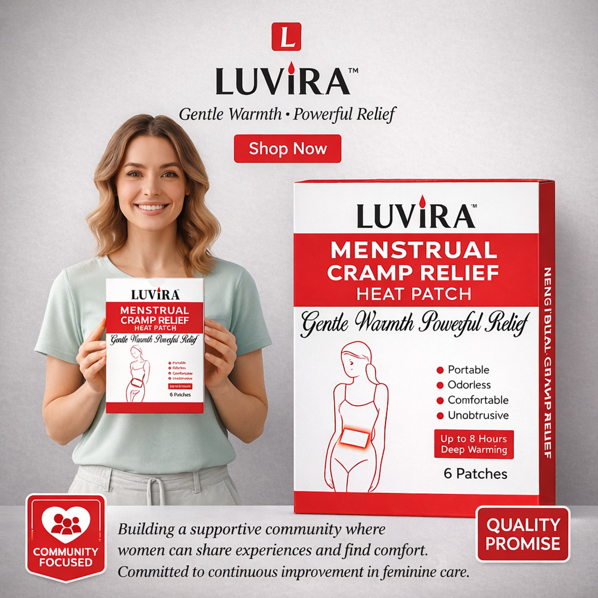 At LUVIRA™, we're committed to transforming the menstrual experience through innovative, natural solutions. We believe that managing period discomfort shouldn't mean compromising on comfort, convenience, or quality of life.